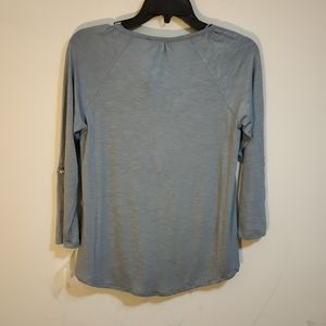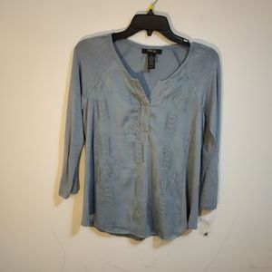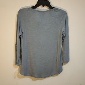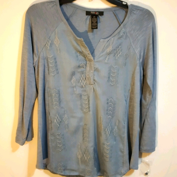Style & Co top new with original tag body: 95% rayon 5% Spandex front lining 100% rayon contrast 100% polyester exclusive of decoration.
