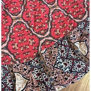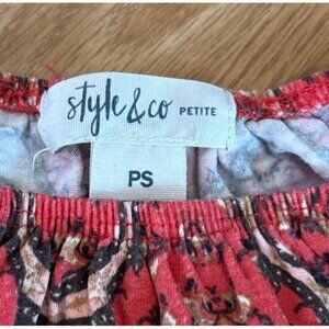 Style & Co Blouse Small Petite Bohemian Floral Bell Sleeve Red Gray Ruffled Boho