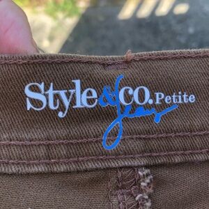 Chic brown jeans by Style & Co. Perfect for casual outings. 98% cotton -2% spandex- made in Jordon. Size 12P short- new or like new