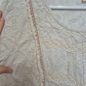 Style & Co Cream Textured Lace Trim Long Sleeve Boho Tunic – Size L