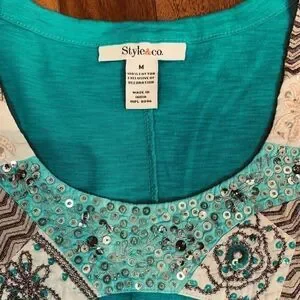 Beautiful teal blue Style & Co tank with embellishments. Excellent condition. See photos for condition and measurements. Size medium.