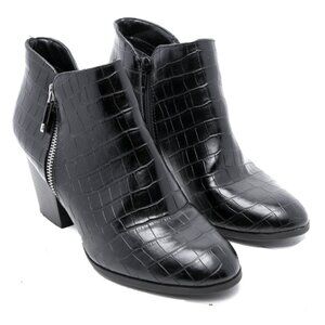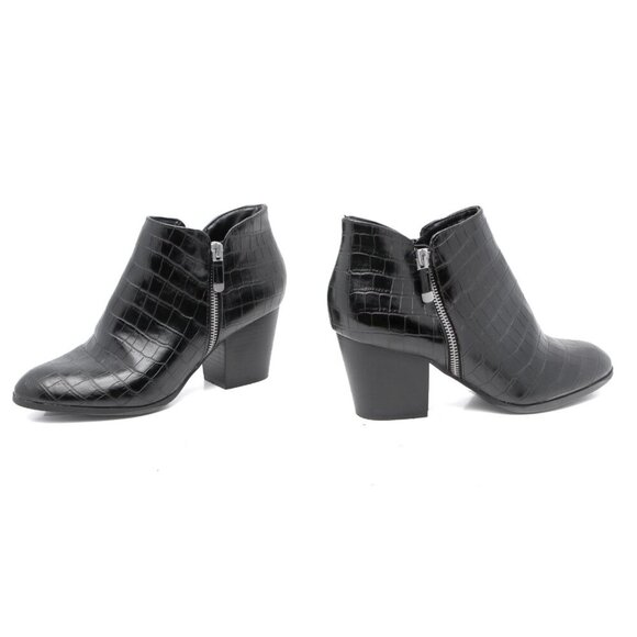 Style & Co. Faux Patent Booties Masrinaa Ankle Boots Black Reptile Block Heel