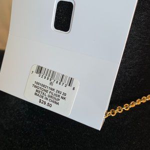 Style & Co Two-Tone Gold and Silver Filigree Necklace & Bracelet Set. Both necklace & bracelet are silver filigree set into a gold bead frame.