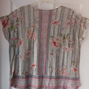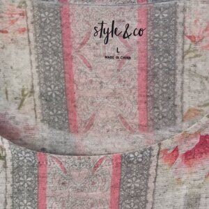 Style & Co Green Stiped Floral Printed Short Sleeve Shirt Size Large