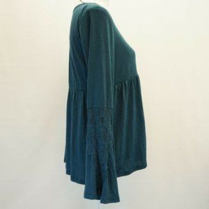 Style & Co Lace-Trim Babydoll Top NWT. Teal Colour. Embroidered Bell Sleeves. 65% Polyester 33% Rayon 2% Spandex