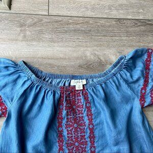 Style & Co Off The Shoulder Voyage Sunwash Chambray Embroidery Dress