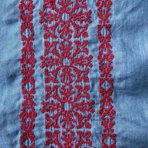 Style & Co Off The Shoulder Voyage Sunwash Chambray Embroidery Dress