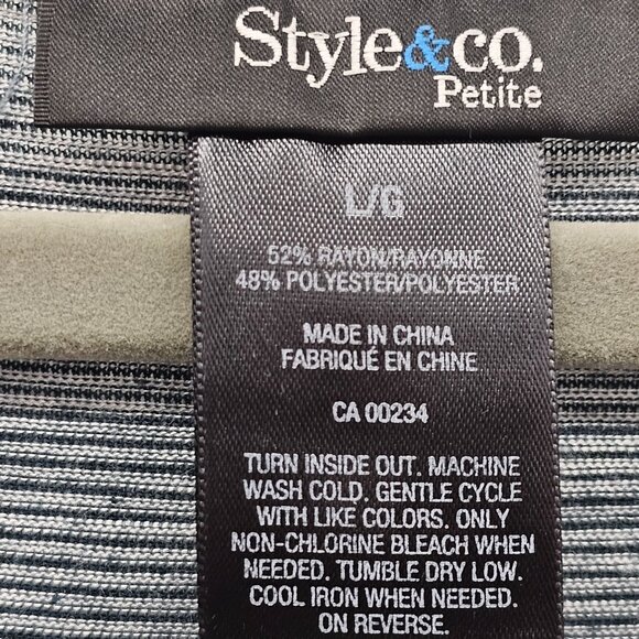 Style & Co Petite L/G Black & White Striped Floral Embellished Short Sleeve Top