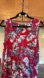 Vibrant red tank with blue floral pattern. Sleeveless design. Perfect for casual outings.