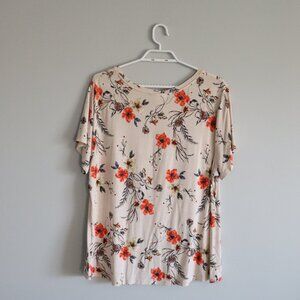 Style & Co. Womens Sz XL Floral Twist Front Hem Comfy Crew Short Sleeve T-Shirt