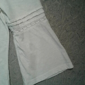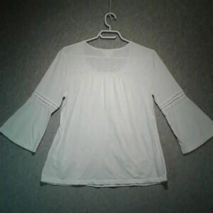 Style & Co Women's White Cotton Blouse Bell Flared Sleeve Embroidered PM Petite