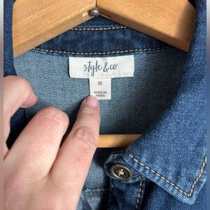 Style & Co. sleeveless denim shirt dress, Size 10, button front, relaxed fit