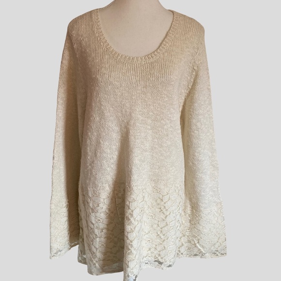 Style & Co.Woman Ivory Lace Hem Metallic Thread Cotton Blend Party Sweater-Sz-2X