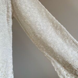 Style & Co.Woman Ivory Knit Metallic Thread Lace Hemlines Crew Neck Sweater