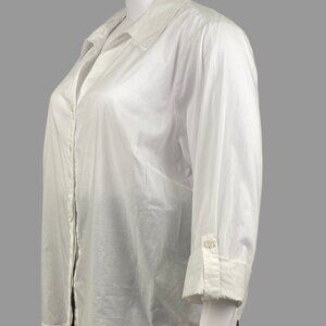 Experience comfort and style with this cotton Style & Co. white button up shirt. Designed with a crisp, cool fabric and a roomy fit, it offers ease of movement and breathability throughout your day. Measurements were taken across garment when on flat surface: Measurements were taken across garment when on flat surface: