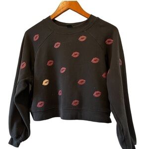 Style Reform, Kissing Lips Sweatshirt in Black Size Small
