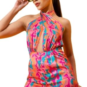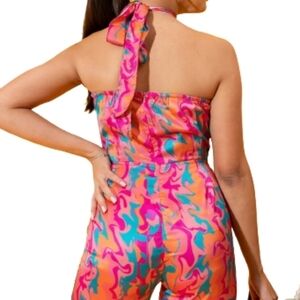 Stylecast halterneck abstract printed wrap multicolor sleeveless jumpsuit