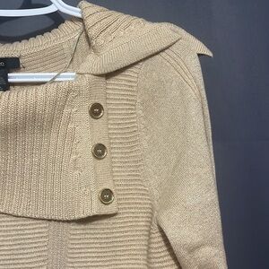Style&co long top. Size large, 45 cm pit to pit, 81 cm in length. This top is sparkly gold, has three buttons located in neck/chest area. 55% cotton, 35% acrylic, 6% polyester, 4% other fabric