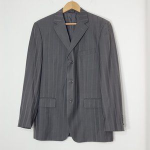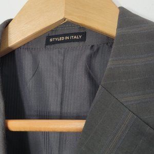 Styled in Italy Men's Gray Pinstriped 3-Button Front Pockets Suit Jacket Blazer