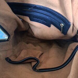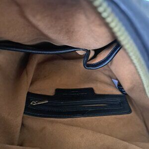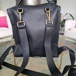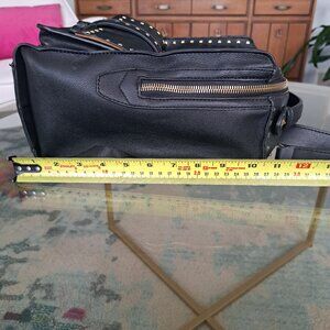 Stylish Black Backpack Gold Studs Imitation Leather with Faux Suede Interior