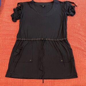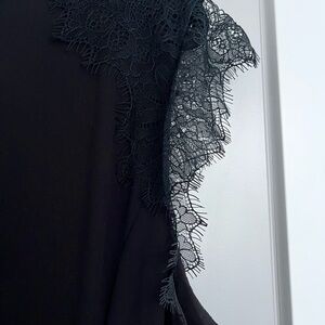 Sophisticated black dress featuring elegant lace details. Ideal for special occasions, work, or cocktail parties. Only worn once.