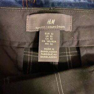 Elegant black pants with a subtle checkered pattern. Perfect for formal or casual wear.
