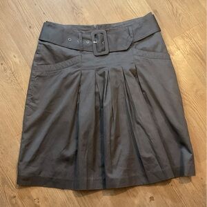 Chic black pleated skirt featuring a matching belt. Perfect for any occasion.lined