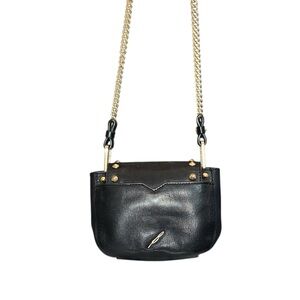 Chic and edgy mini bag by Brian Atwood, featuring luxe black leather with gold-tone stud detailing and a statement chain strap. Perfect for day-to-night styling.
