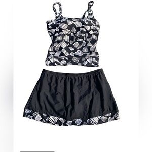 Stylish Black & White Abstract Print Tankini Swimsuit Set - Swim Skirt & Top