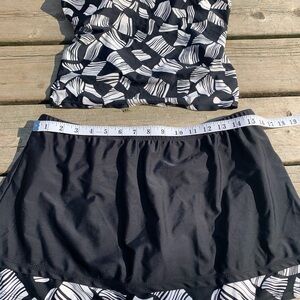 #Swimsuit #Tankini #SwimSkirt #Beachwear #Poolside #SummerFashion #AbstractPrint #BlackAndWhite #WomensSwim #ModestSwim #Vacation