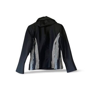 Elevate your wardrobe with this chic black and gray jacket. Perfect for any occasion, this stylish piece offers both comfort and elegance.