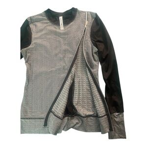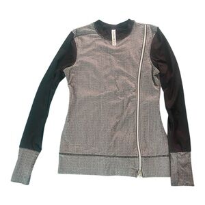 Kyodan Thermacool stretch tweed side zip women”s athletic long sleeve top. Warm stretch grey tweed. Close fit size XS. Excellent choice for a cool weather run.