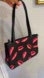 Make a bold statement with this chic tote bag featuring a striking pink lips design on a black background. Perfect for adding a touch of fun to any outfit.