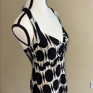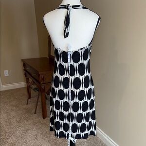 Elevate your wardrobe with this chic black and white halter dress. Perfect for any occasion, this dress offers a timeless look with its bold pattern and flattering fit.
