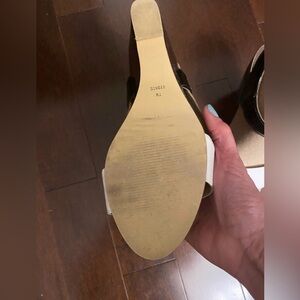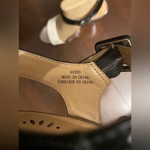 Elevate your style with these chic black and white wedges. Perfect for any occasion, these shoes offer both comfort and elegance.