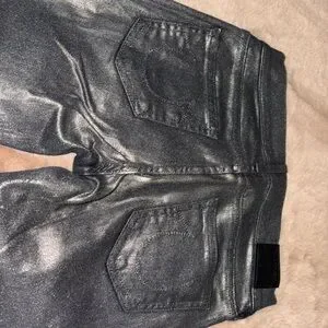 Add sparkle to your outfit with these shimmering black jeans. True Religion offers a sleek and stylish look.