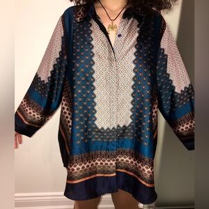 Stylish Blue Patterned Button Down Shirt