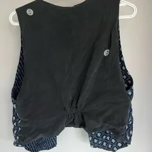 Chic vest with a blue and black pattern. Perfect for layering.
