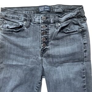 Step out in sleek sophistication with these GAP Black High-Rise Skinny Jeans! Featuring a unique button-up design (no zipper!), these jeans offer a flattering fit with just the right amount of stretch. Perfect for dressing up or down—pair with heels for a night out or sneakers for a casual vibe. Don’t miss out on this closet staple!