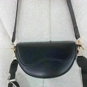 This black crossbody bag features a dual-strap design, offering versatility for both crossbody and shoulder carrying styles. The metal buckle accents add a touch of sophistication, while the minimalist design makes it perfect for everyday use, complementing a variety of outfits.