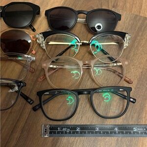 Set of 8 stylish eyewear pieces. Includes black, brown, and clear frames. Perfect for any occasion.