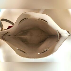 Minor stain on bottom and minor ripping on one of the holes that holds the tie.