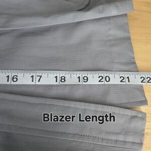 Chic gray jacket with button-up front and large collar. Features two front pockets and puff sleeves.