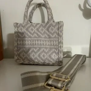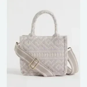 Chic handbag with a textured gray pattern. Features a sturdy handle and adjustable strap. Height 16 cm Width. 19 cm