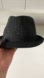Elegant gray pinstripe fedora hat with a black band. Perfect for adding a touch of sophistication to any outfit.