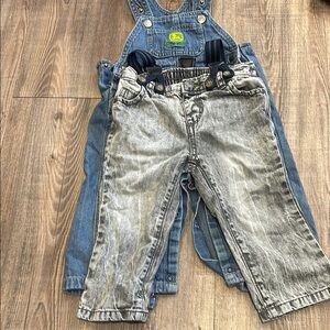 This set includes a pair of classic blue denim overalls and stylish gray jeans, perfect for any occasion. The overalls feature adjustable straps for a comfortable fit. Ideal for active kids.