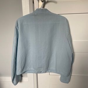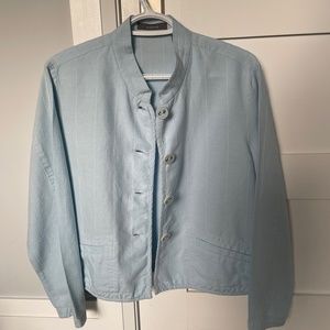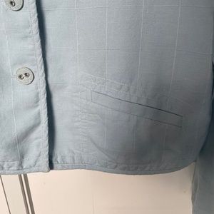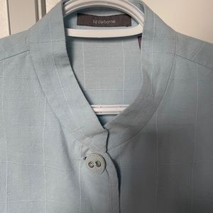 Stylish linen/cotton jacket by Liz Claiborne, material - 60% linen/40%cotton, size - Large, measurements: pit to pit - approx. 56.5 cm, length of sleeve - approx. 56.5 cm, colour - light blue, very good used condition.
