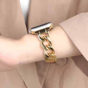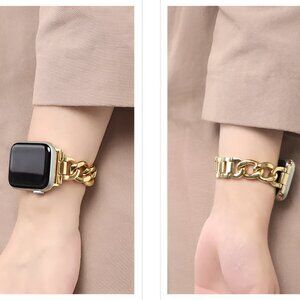 Stylish Metal Adjustable Strap Chain Stainless Band For Apple Watch - Gold