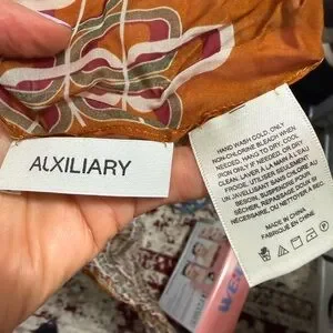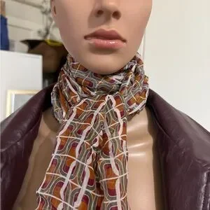 Elevate your style with this chic multicolor patterned scarf. Perfect for adding a touch of elegance to any outfit. I believe I bought at either Aritzia or Plenty. Silk blend.