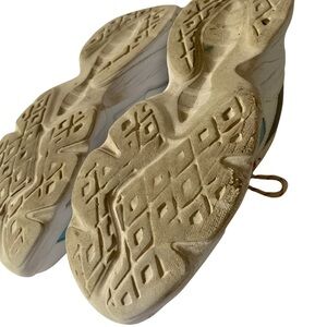 Details - white, pink, and blue runnings shoes with some marks see photos